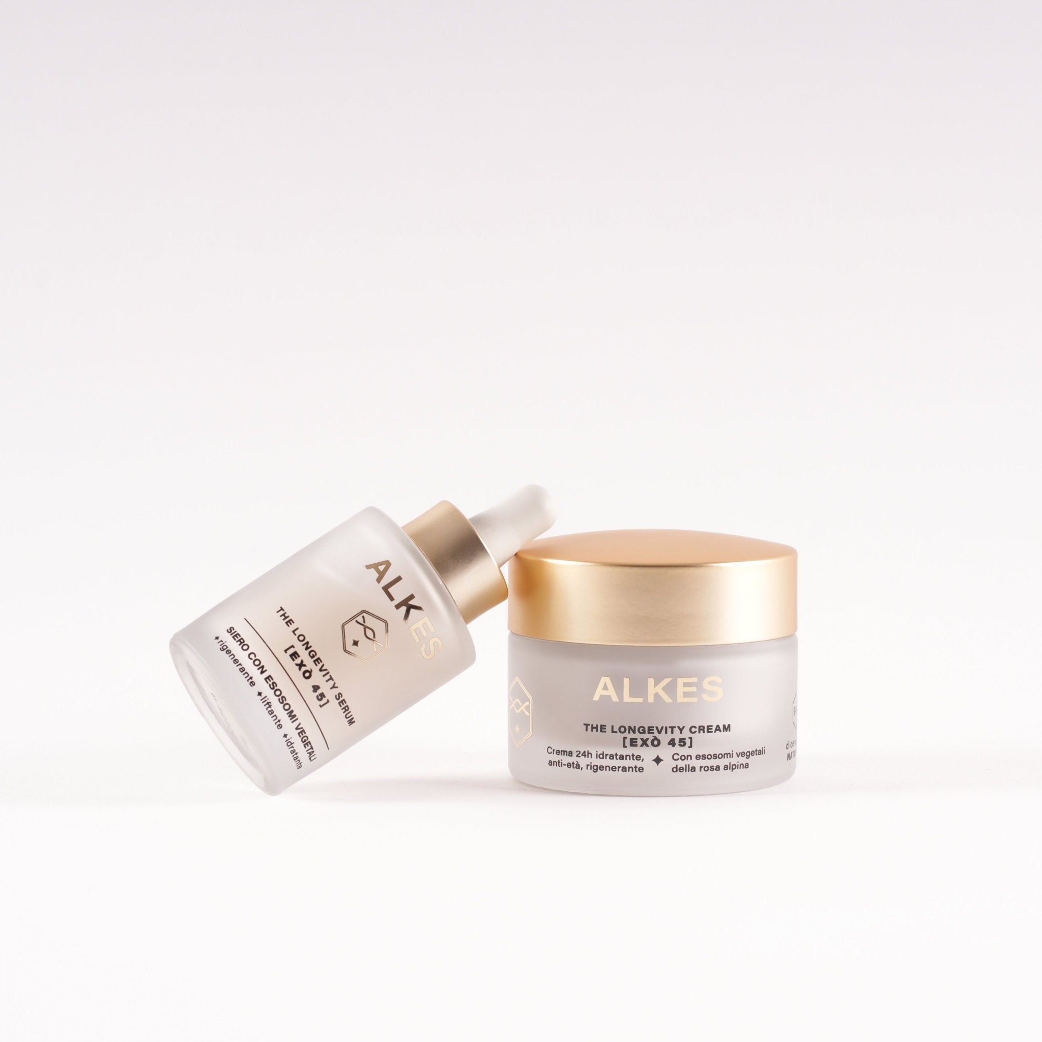 EXÒ 45 ridona energia alla pelle grazie a una formula high-tech a base di esosomi vegetali che riattivano le cellule, aumentano idratazione ed elasticità e levigano le micro-rughe dall’interno.